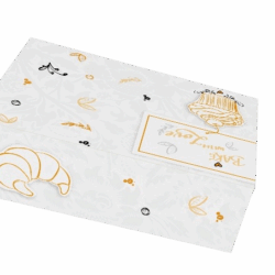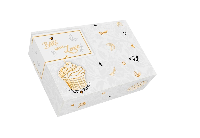 Cajas rectangulares con asa Ágata para tartas. Elige nuestro modelo estándar o personalízalas con tu propia marca, eligiendo el diseño, los colores y tu logotipo. También puedes personalizar el modelo estándar mediante stamping de tu logotipo.